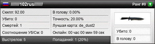 | de_inferno | 0 | 0.00 | 0.00 | 1 | 1 | 00:00:51 | 27.11.2015 | |