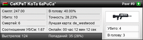 | de_westwood | 7 | 1.75 | 1.09 | 1 | 7 | 00:06:24 | 04.07.2017 | |
