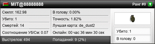 | de_dust2 | 1 | 0.12 | 0.05 | 1 | 11 | 00:20:23 | 05.07.2017 | |