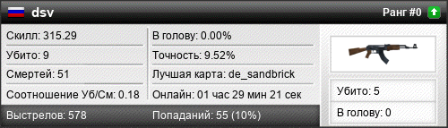 | de_sandbrick | 4 | 0.29 | 0.13 | 1 | 19 | 00:30:42 | 08.07.2017 | |