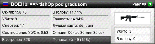 | de_westwood | 0 | 0.00 | 0.00 | 2 | 3 | 00:04:04 | 09.07.2017 | |