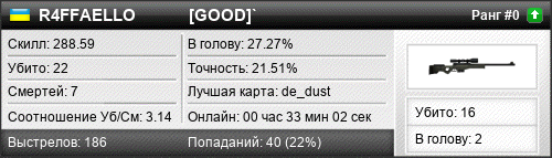 | 29.08.2017 @ 04:09 - 04:10 | de_train | 00:01:30 | 0 | 0 | 0 | 0.00% | 0.00% | 101.98 |