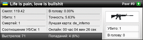 de_inferno | 1 | 1.00 | 0.23 | 1 | 2 | 00:04:26 | 13.07.2017 |