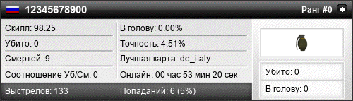 | 13.07.2017 @ 04:34 - 04:40 | de_westwood | 00:05:44 | 0 | 3 | 0 | 0.00% | 16.67% | 100.90 |