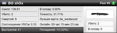 | de_westwood | 3 | 0.38 | 0.23 | 1 | 8 | 00:12:49 | 16.07.2017 | |