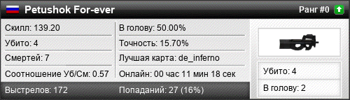 | de_inferno | 4 | 0.57 | 0.36 | 1 | 7 | 00:11:03 | 20.07.2017 | |