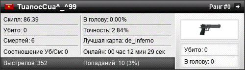 | de_nuke | 0 | 0.00 | 0.00 | 0 | 6 | 00:10:30 | 01.01.1970 | |