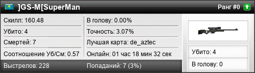 | de_aztec | 4 | 0.80 | 0.19 | 1 | 13 | 00:21:07 | 07.01.2016 | |