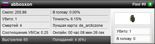 | de_arcticzone | 1 | 0.25 | 0.15 | 1 | 5 | 00:06:46 | 02.08.2017 | |