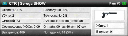 | de_nuke | 0 | 0.00 | 0.00 | 1 | 7 | 00:06:52 | 05.08.2017 | |