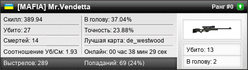 | de_westwood | 26 | 2.60 | 0.80 | 3 | 24 | 00:32:31 | 16.09.2018 | |