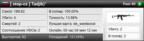 | de_westwood | 4 | 4.00 | 1.45 | 1 | 2 | 00:02:45 | 23.08.2017 | |