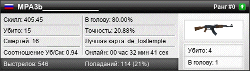 | de_losttemple | 15 | 1.15 | 0.54 | 1 | 19 | 00:27:50 | 23.08.2017 | |