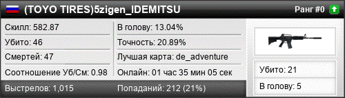 | de_adventure | 14 | 1.17 | 0.43 | 1 | 19 | 00:32:14 | 24.08.2017 | |