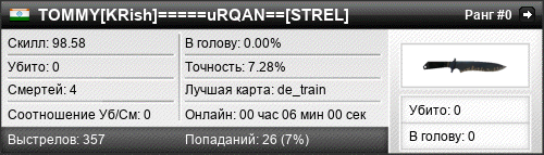 | de_inferno | 0 | 0.00 | 0.00 | 1 | 1 | 00:00:26 | 25.08.2017 | |