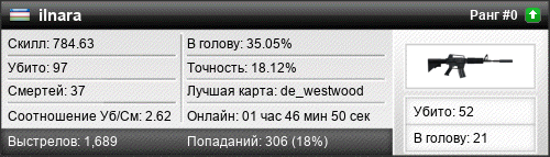 | de_westwood | 42 | 2.47 | 1.14 | 2 | 27 | 00:36:41 | 01.07.2018 | |