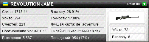 | de_king | 27 | 2.25 | 0.84 | 1 | 21 | 00:32:13 | 26.08.2017 | |