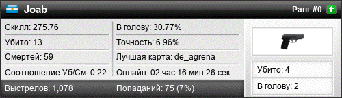 | de_agrena | 4 | 0.29 | 0.15 | 1 | 17 | 00:26:31 | 29.08.2017 | |