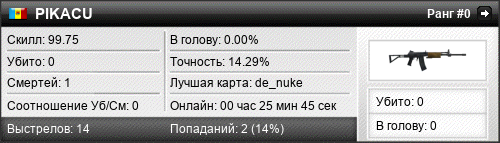 | de_nuke | 0 | 0.00 | 0.00 | 0 | 2 | 00:02:02 | 01.01.1970 | |