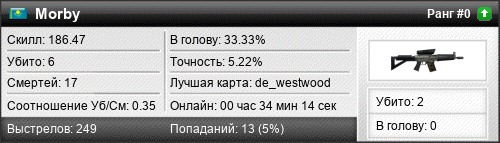 | de_westwood | 3 | 0.25 | 0.13 | 1 | 15 | 00:23:05 | 31.08.2017 | |