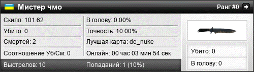 | de_nuke | 0 | 0.00 | 0.00 | 1 | 1 | 00:01:29 | 01.09.2017 | |