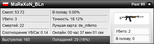 de_inferno | 2 | 0.18 | 0.12 | 1 | 12 | 00:16:09 | 20.10.2015 |