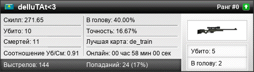 | de_nuke | 0 | 0.00 | 0.00 | 1 | 4 | 00:04:59 | 01.10.2017 | |