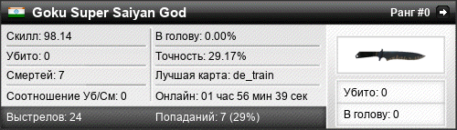 | de_inferno | 0 | 0.00 | 0.00 | 3 | 5 | 00:04:01 | 08.10.2017 | |