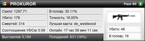 | de_dust2 | 26 | 0.43 | 0.19 | 17 | 115 | 02:17:24 | 27.03.2024 | |