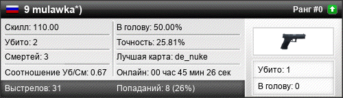 | 26.10.2017 @ 07:38 - 07:38 | de_aztec | 00:00:30 | 0 | 0 | 0 | 0.00% | 0.00% | 100.00 |