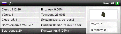 | de_inferno | 0 | 0.00 | 0.00 | 2 | 0 | 00:01:07 | 25.09.2017 | |