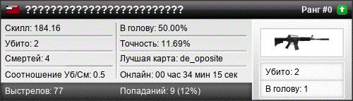| de_nuke | 0 | 0.00 | 0.00 | 1 | 0 | 00:00:36 | 06.10.2017 | |