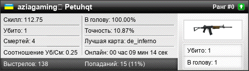 | de_inferno | 1 | 0.25 | 0.11 | 1 | 5 | 00:09:14 | 05.10.2017 | |