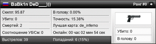 de_inferno | 0 | 0.00 | 0.00 | 1 | 2 | 00:02:54 | 12.10.2017 |