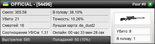 | de_dust2 | 14 | 1.17 | 0.60 | 1 | 14 | 00:23:20 | 12.10.2017 | |