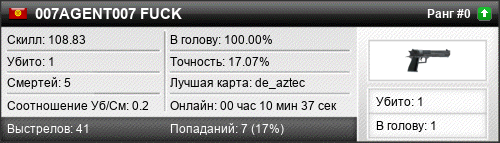 | de_aztec | 1 | 0.20 | 0.12 | 1 | 6 | 00:08:37 | 15.10.2017 | |