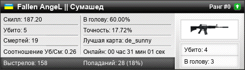| de_sunny | 5 | 0.38 | 0.22 | 2 | 17 | 00:22:47 | 30.10.2017 | |
