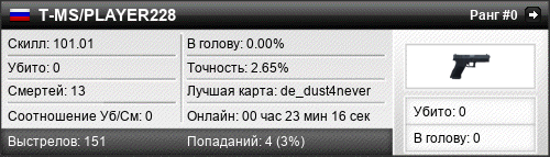 | de_dust4never | 0 | 0.00 | 0.00 | 6 | 12 | 00:14:11 | 02.11.2017 | |