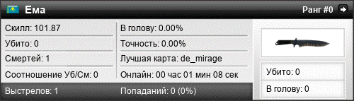 de_mirage | 0 | 0.00 | 0.00 | 1 | 1 | 00:00:42 | 06.11.2017 |