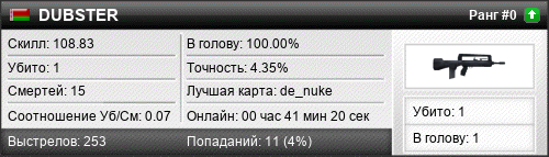 | 29.05.2020 @ 12:03 - 12:20 | de_nuke | 00:17:30 | 1 | 10 | 1 | 100.00% | 3.55% | 106.98 |