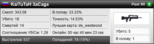 | de_laguna | 8 | 2.00 | 0.35 | 1 | 13 | 00:23:06 | 10.11.2017 | |