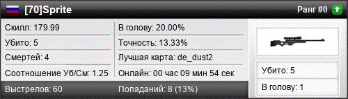 Arctic Warfare Police 5 1 1 20.00% 62.50% 1.60 883