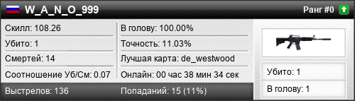 | de_westwood | 1 | 0.50 | 0.16 | 1 | 4 | 00:06:21 | 30.12.2017 | |