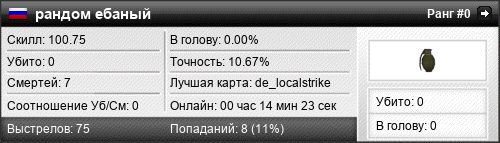 | de_localstrike | 0 | 0.00 | 0.00 | 1 | 7 | 00:09:28 | 24.11.2017 | |