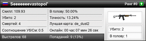 AK-47 0 2 0 0.00% 11.11% 9.00 26