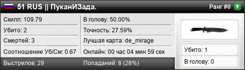 | de_mirage | 2 | 0.67 | 0.47 | 1 | 4 | 00:04:17 | 01.12.2017 | |