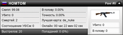 | de_nuke | 0 | 0.00 | 0.00 | 1 | 2 | 00:03:37 | 03.12.2017 | |