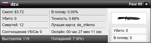 | de_mirage | 0 | 0.00 | 0.00 | 1 | 8 | 00:11:24 | 04.12.2017 | |