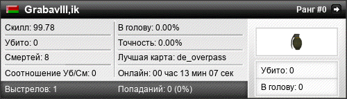 | de_overpass | 0 | 0.00 | 0.00 | 1 | 8 | 00:11:56 | 12.12.2017 | |