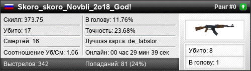 | de_fabstor | 15 | 1.25 | 0.62 | 1 | 14 | 00:24:10 | 22.12.2017 | |